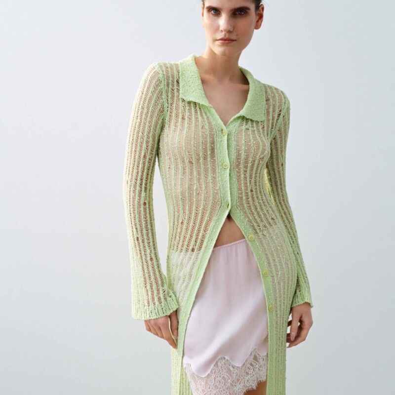 Міді спідниця з легкої тканини з делікатною гладкою фактурою. Модель має еластичний пояс для комфортної посадки та оздоблення мереживом по низу, що додає ніжності та жіночності образу.