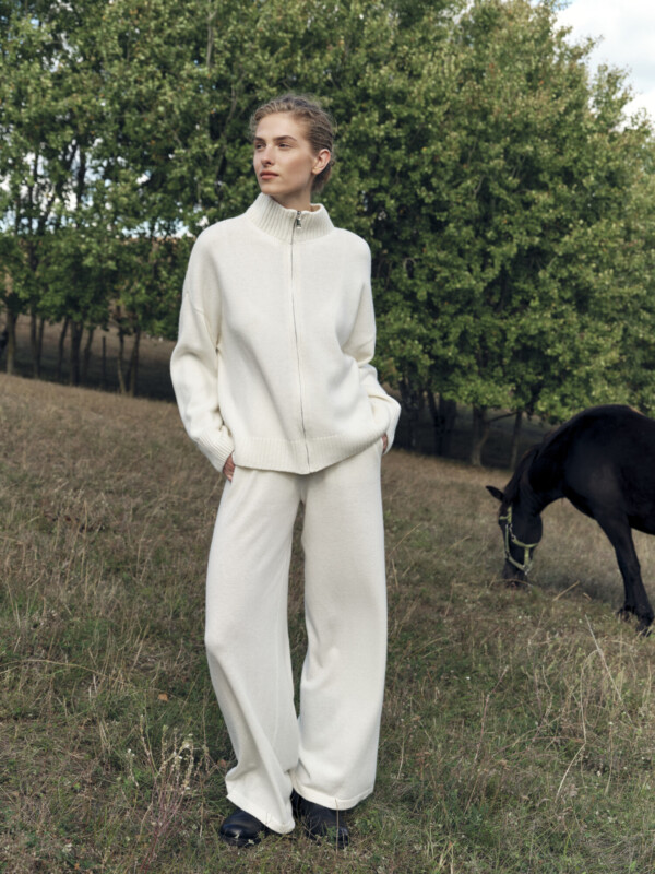 Вільні прямі штани з вовною ягняти створені для максимального комфорту та зручності у щоденному носінні. М’яка еластична пряжа приємна до тіла, добре зберігає тепло та не обмежує рухів. Модель доповнена практичними кишенями та широким поясом, що забезпечує комфортну посадку й функціональність. Завдяки лаконічному крою штани чудово поєднувати з джемпером – поло FRANCES та кардиганом VERONE.