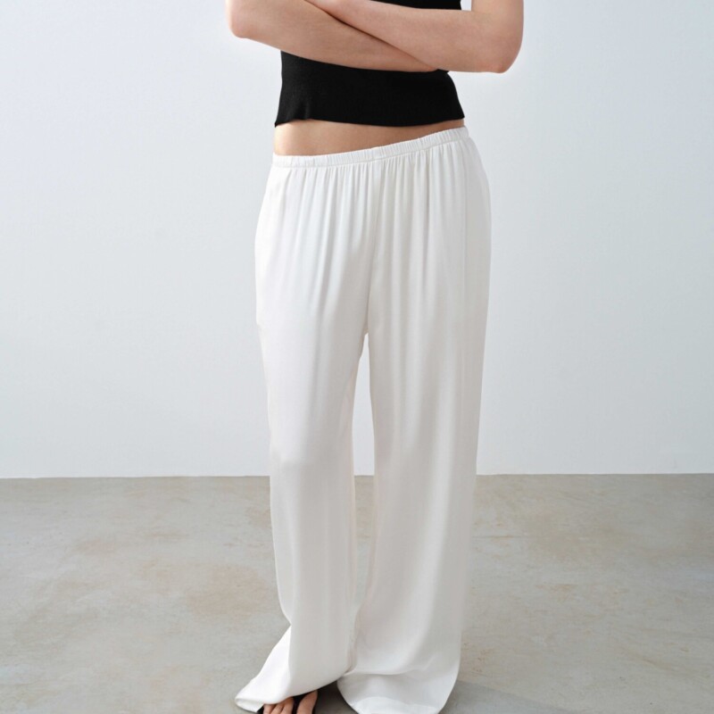 Trousers made of suiting fabric with a clear structure that holds its shape well. The straight cut model with arrows visually lengthens the silhouette and creates a neat, collected look.